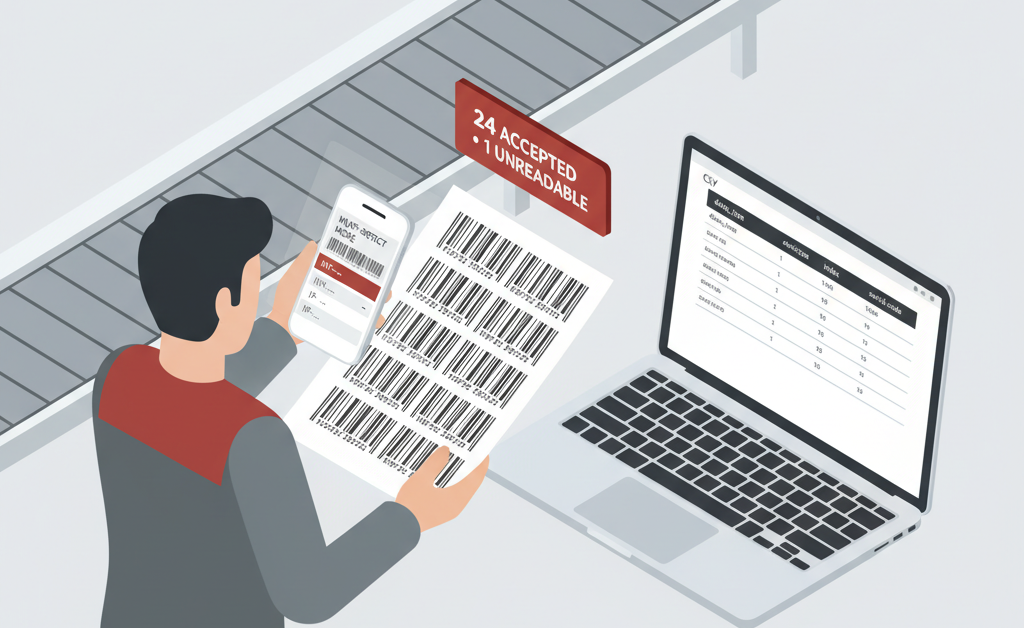 Some early photos showed washed or broken bars. We advised: consistent lighting, avoiding motion blur, and (optionally) enabling an OCR assist layer to parse human-readable text beneath damaged barcodes, raising total batch accuracy.