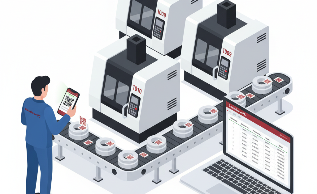 Each scan automatically captures the machine number, operator identity, and precise timestamp, creating a complete audit trail for every part.